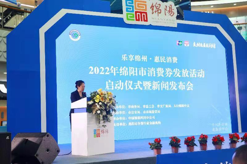 2022年4月29日,“樂享綿州·惠民消費(fèi)”—2022年綿陽市消費(fèi)券發(fā)放活動(dòng)在涪城區(qū)萬達(dá)正式啟動(dòng)。市人民政府副市長李南希出席并宣布啟動(dòng),市商務(wù)局、市總工會(huì)、市文廣旅局、市公安局、市市場(chǎng)監(jiān)管局、人民銀行成都分行、人民銀行綿陽中心支行、中國銀聯(lián)四川分公司,以及市內(nèi)各銀行業(yè)金融機(jī)構(gòu)、參與商戶、媒體代表出席本次活動(dòng)。